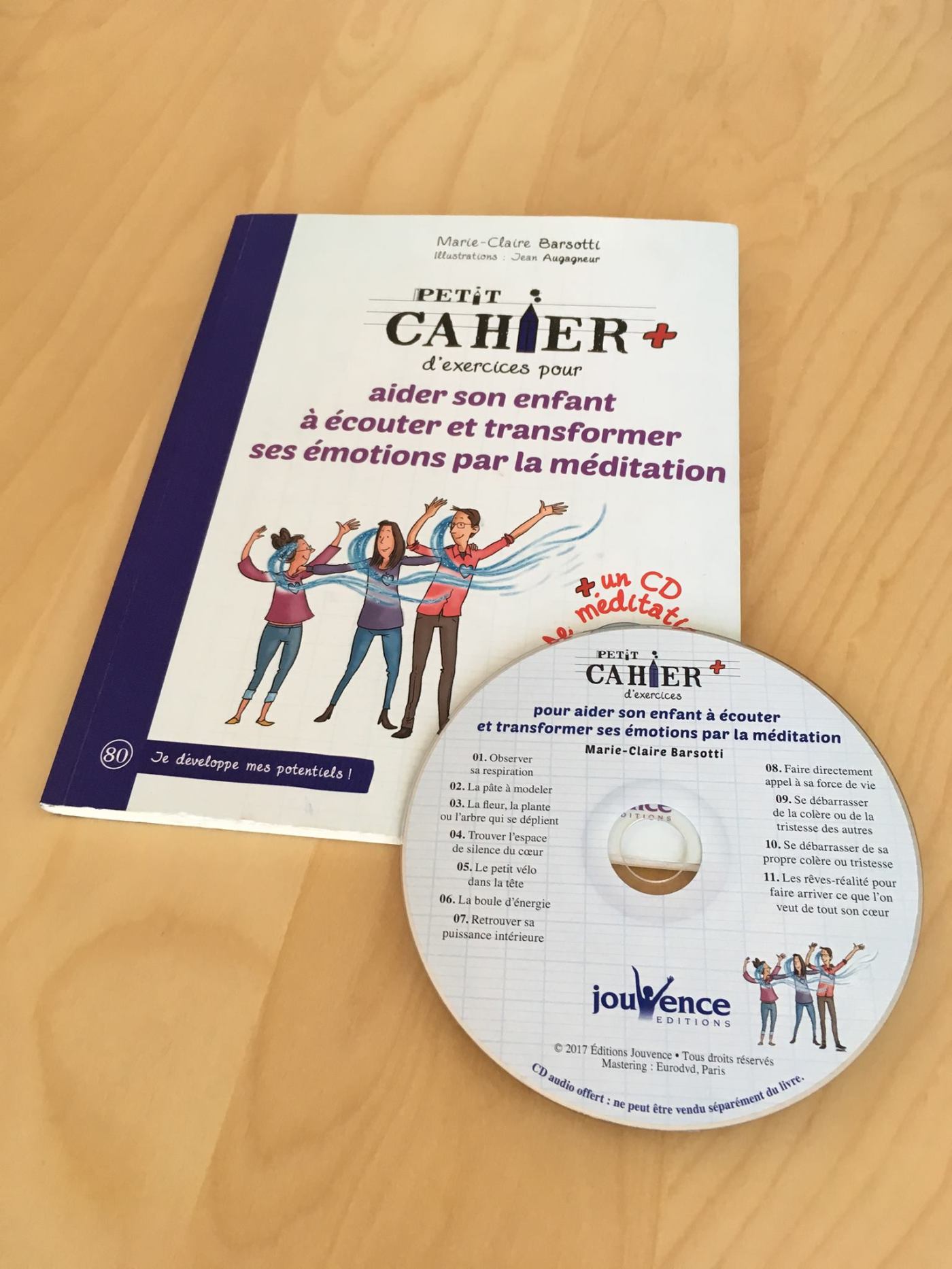 Si vous aussi vous voulez donner le goût de la méditation à vos enfants, je vous conseil fortement le « Petit Cahier d’exercices pour aider son enfant à écouter et transformer ses émotions par la méditation » de Marie-claire Barsotti